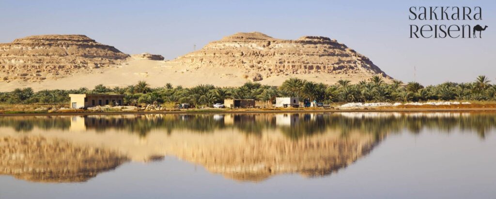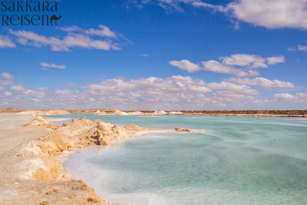 Der Tag endet mit einem Besuch der Salzseen rund um die Oase, wo Sie die Reflexion der untergehenden Sonne über den glitzernden Salzflächen beobachten können – ein magischer Moment, der die besondere Stimmung der Siwa-Oase unterstreicht.