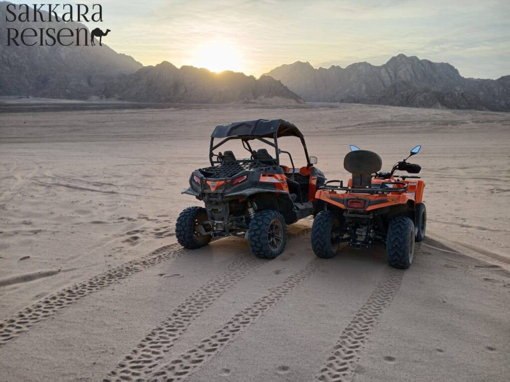 Die frühe Fahrt durch die Wüste eröffnet ein spektakuläres Erlebnis, bei dem die goldene Morgenstimmung die endlosen Sandflächen in warmes Licht taucht. Während der Fahrt können Sie die Ruhe der Wüstenlandschaft genießen, die Stille des Horizonts aufnehmen und die Vorfreude auf den Besuch der historischen Stätten steigern. Ihr Guide gibt informative Einblicke in die Geografie und Geschichte der Region, während die vorbeiziehende Landschaft das Gefühl von Abenteuer und Freiheit verstärkt.