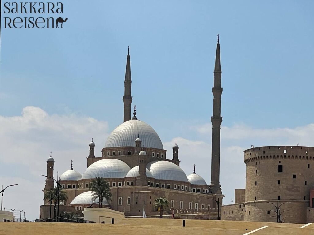 Im zweiten Teil Ihres Besuchs genießen Sie die Aussicht auf die Stadt, die lebendigen Straßen und bei klarer Sicht die Pyramiden von Gizeh in der Ferne. Hier verschmelzen Geschichte, Architektur und Panorama zu einem einzigartigen Erlebnis. Die Kombination aus Wissensvermittlung, ruhiger Reflexion und fotografischen Möglichkeiten macht diesen Ausflug zu einem emotional bereichernden Höhepunkt Ihres Aufenthalts in Kairo.