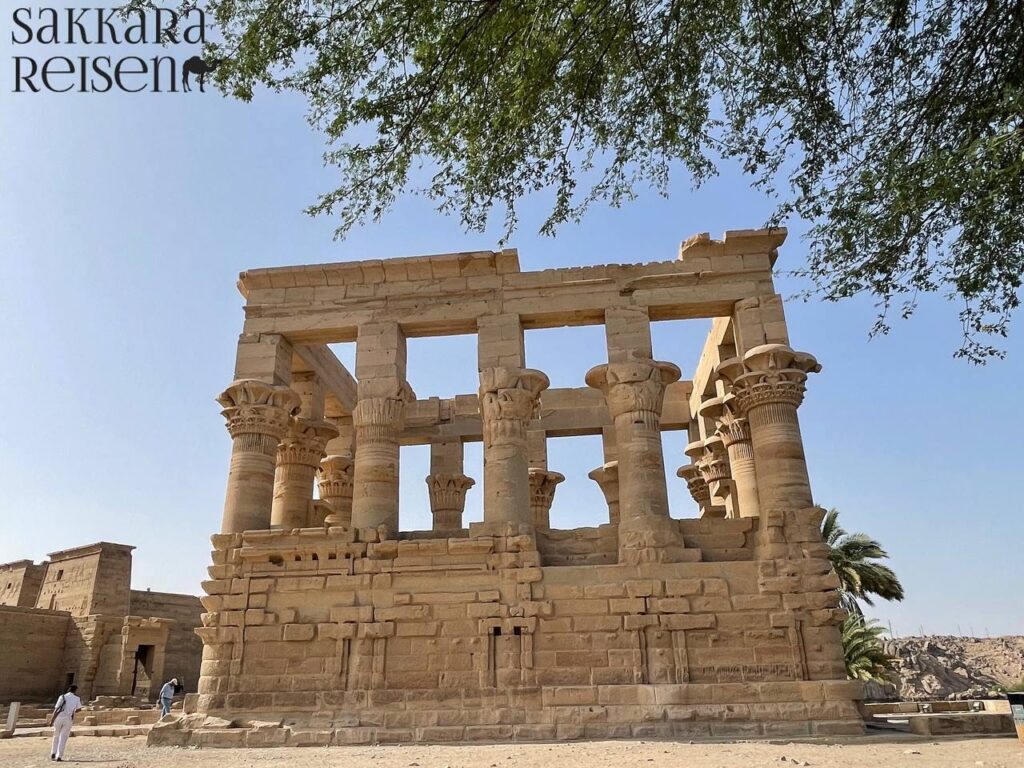 Der Philae-Tempel auf der Insel Agilkia ist ein Ort von unvergleichlicher Schönheit und spiritueller Energie. Beim Betreten der heiligen Anlage können Sie die kunstvollen Reliefs und Inschriften bewundern, die die Legenden von Isis und Osiris erzählen. Ihr Guide erläutert die Geschichte des Tempels, seine Verlagerung nach Agilkia während der Errichtung des Assuan-Staudamms und die architektonischen Besonderheiten, sodass Sie die tief verwurzelte Bedeutung dieser Kultstätte erleben.