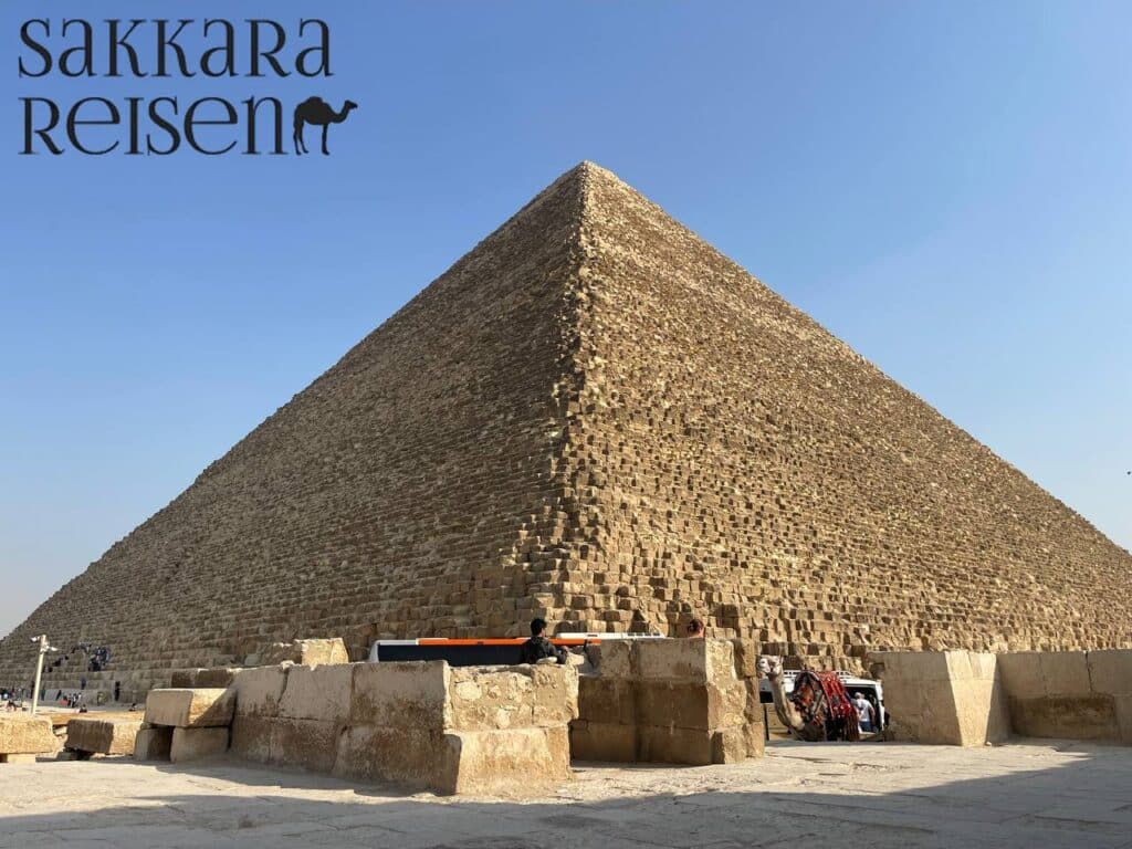 Wenn Sie die Option wählen, die Cheops-Pyramide von innen zu besichtigen, achten Sie auf ausreichend Wasser und bequeme Schuhe, da der Zugang über schmale Gänge erfolgt.