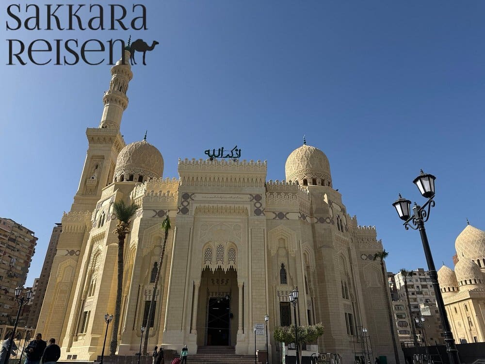 Den ruhigen Abschluss des Tages bildet die eindrucksvolle Abu al-Abbas al-Mursi Moschee, das wichtigste religiöse Wahrzeichen der Stadt. Die prachtvolle Architektur mit ihren Kuppeln, Minaretten und kunstvollen Ornamenten spiegelt die spirituelle Tradition Alexandrias wider. Beim Betreten der Moschee erleben Sie eine Atmosphäre der Stille und inneren Einkehr.
