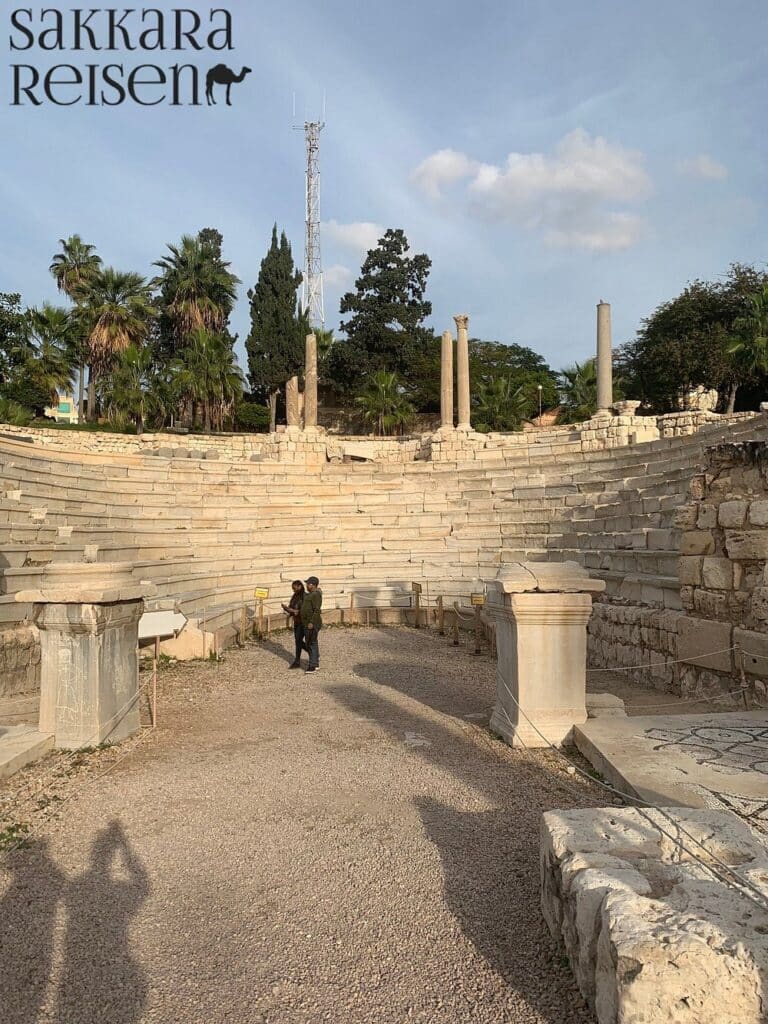 Während des geführten Rundgangs genießen Sie ausreichend Zeit für Fotos und individuelle Perspektiven. Die offene Platzanlage ermöglicht einen klaren Blick auf das Monument und die umliegenden Ruinen. Dieser Stopp verbindet kulturelle Tiefe mit einem authentischen Erlebnis antiker Geschichte und gehört zu den symbolträchtigsten Momenten Ihrer historischen Entdeckungstour entlang der Mittelmeerküste.