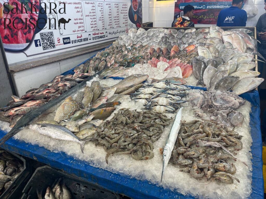 Nur wenige Minuten entfernt tauchen Sie ein in die lebendige Atmosphäre des traditionellen Fischmarkts und des farbenfrohen Gemüse- und Obstmarkts. Diese Station Ihrer Hurghada Sehenswürdigkeiten Tour zeigt das wirtschaftliche Herz der Altstadt. Frisch gefangener Fisch aus dem Roten Meer, duftende Gewürze und saisonales Obst prägen das authentische Bild dieses Marktes.