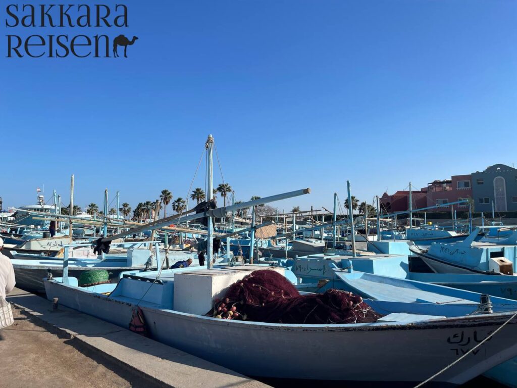 Anschließend führt Sie die Route zum ursprünglichen Fischerdorf und zur traditionellen Bootswerft, einem besonderen Highlight jeder Hurghada Privattour. In ruhiger Atmosphäre beobachten Sie Handwerker bei der Reparatur von Holzbooten und erfahren mehr über die maritime Vergangenheit der Region. Ihr Guide erläutert, wie sich Hurghada vom kleinen Küstenort zur bekannten Destination entwickelte.