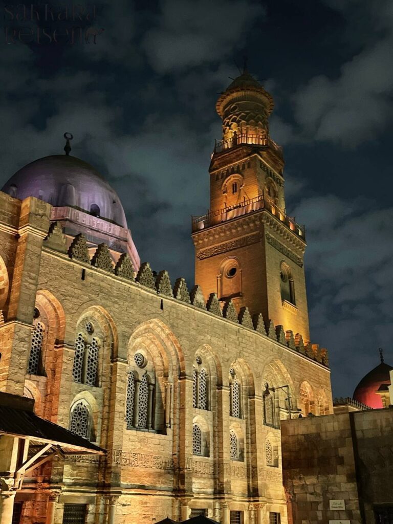 Während man durch die prunkvollen Hallen schreitet, vermittelt die islamische Architektur das Gefühl von Erhabenheit und innerer Ruhe. Die Moschee dient nicht nur als religiöser Ort, sondern auch als Symbol für die kulturelle Verschmelzung von Tradition und künstlerischer Perfektion. Besucher können die kunstvoll gestalteten Minarette und den zentralen Gebetsraum bewundern, während die Atmosphäre von Licht und Schatten eine einzigartige meditative Erfahrung bietet. Die Verbindung von Spiritualität, historischer Bedeutung und visuellem Genuss macht diesen Ort zu einem unverzichtbaren Teil jeder Kairo-Tour.