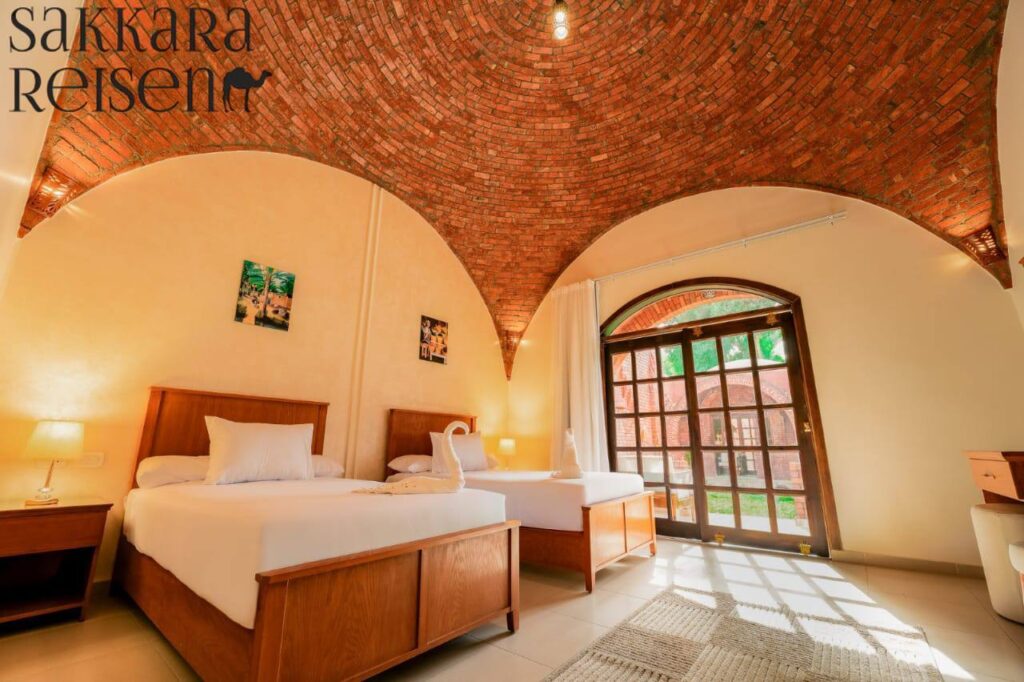 Im Anschluss können Besucher die nahegelegenen Highlights planen oder sich kurz erholen, bevor die ersten Abenteuer beginnen. Ob ein Spaziergang durch die historischen Straßen, ein entspannter Kaffee auf der Hotelterrasse oder die Vorbereitung für die bevorstehende Besichtigung der Pyramiden von Gizeh, der Aufenthalt im Hotel bietet den idealen Ausgangspunkt. Durch die zentrale Lage des Hotels sind Transfers zu den wichtigsten Sehenswürdigkeiten Kairos bequem und zeitsparend, sodass jede Aktivität maximal genossen werden kann.