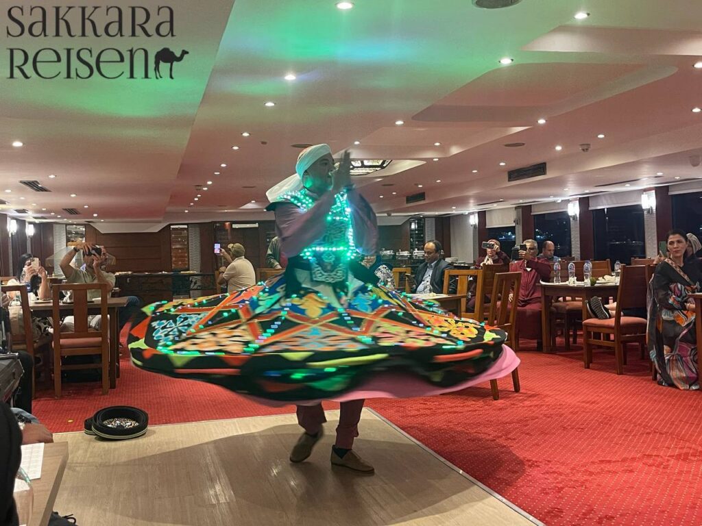 Ein unvergesslicher Höhepunkt des ersten Abends ist die Dinner-Cruise auf dem Nil, die Kultur, Kulinarik und Unterhaltung auf einzigartige Weise verbindet. Während das Boot sanft über den Nilfluss gleitet, genießen die Gäste ein reichhaltiges orientalisches Buffet mit ägyptischen Spezialitäten wie Koshari, gegrilltem Fisch und frischen Salaten. Live-Musik, traditionelle Tänze und beeindruckende Shows sorgen für eine festliche Atmosphäre, die den Sonnenuntergang über der Stadt magisch einrahmt.