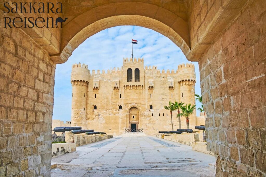 Frühmorgens beginnt die Fahrt nach Alexandria, ca. 2,5 Stunden von Kairo entfernt, vorbei an malerischen Landschaften. Dort erwarten Sie die Katakomben von Kom El Shoqafa, die römische und ägyptische Kunst vereinen, sowie die imposante Qaitbay Zitadelle, die am Mittelmeer thront.