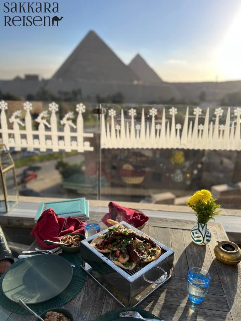 Kulinarische Entdeckungen sind ein zentraler Bestandteil Ihrer Reise. Im Farmhaus bei Sakkara genießen Sie frische, authentische ägyptische Gerichte, direkt aus dem eigenen Garten der Farm. Die Kombination aus traditionellen Aromen, Gemüse der Saison und hausgemachten Speisen bietet ein unvergleichliches Geschmackserlebnis. Zwischen Besuchen der Sakkara Stufenpyramide und der Memphis Nekropole ist ein Mittagessen hier eine perfekte Gelegenheit, die kulinarische Kultur Ägyptens hautnah zu erleben.