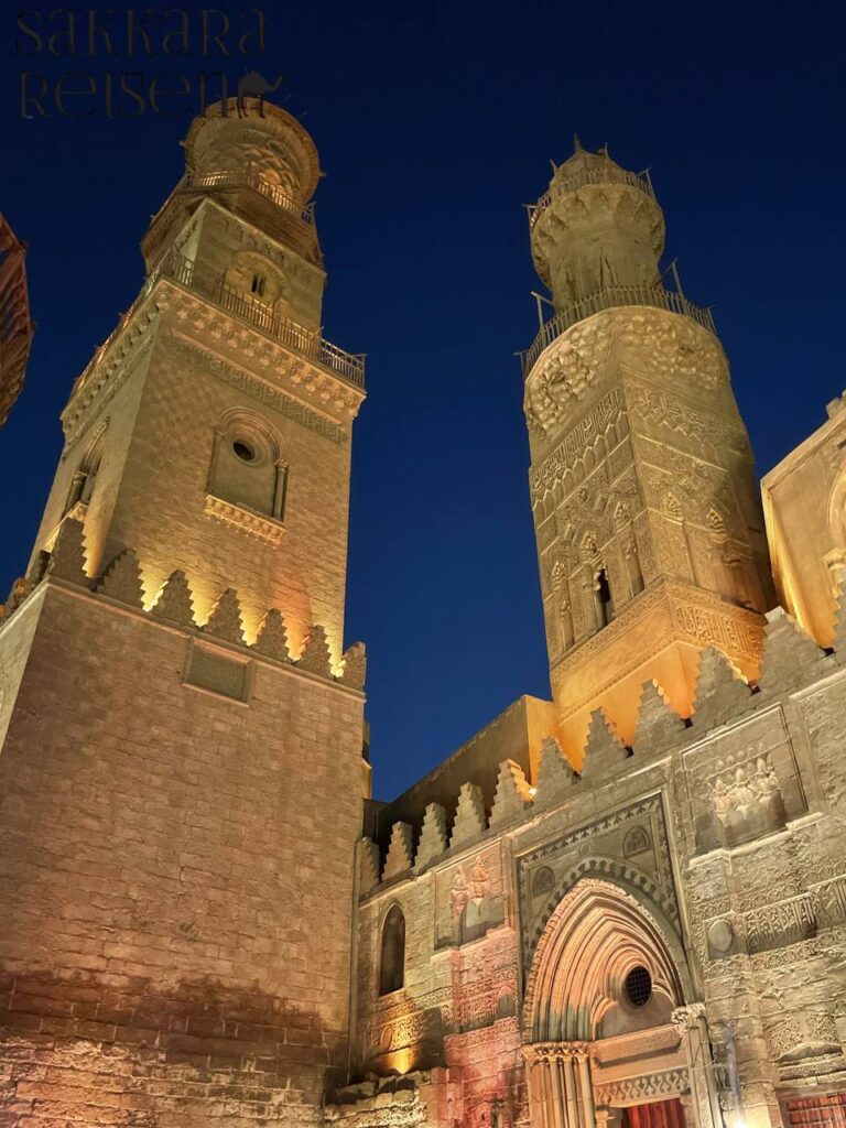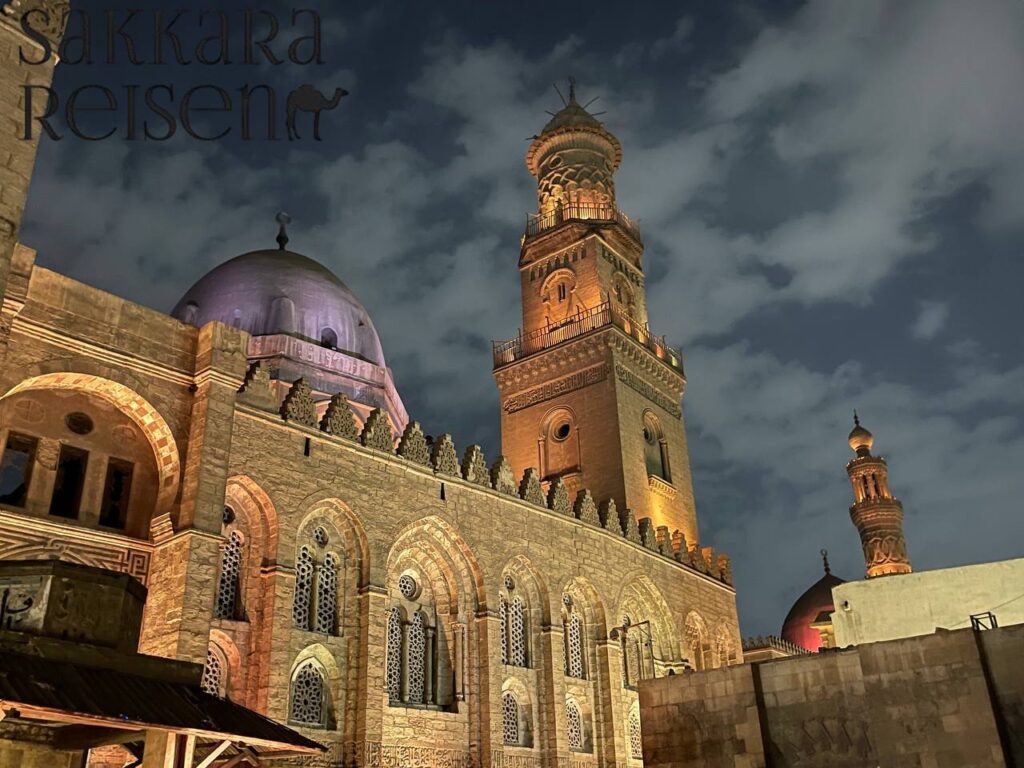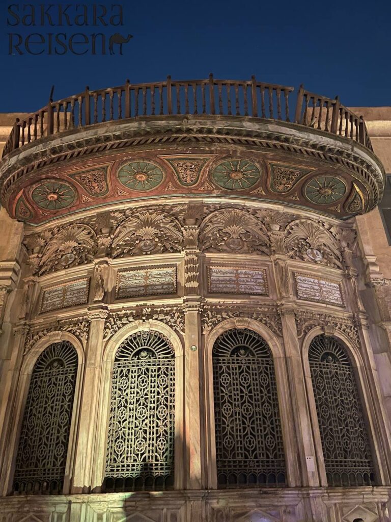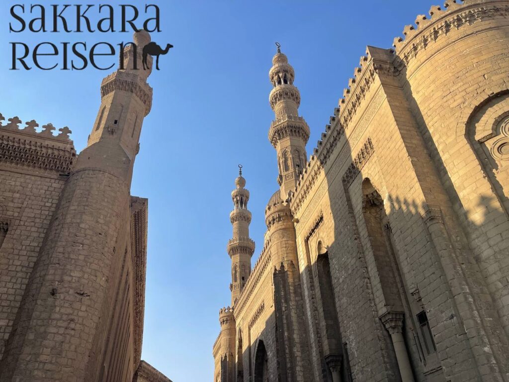 Nur wenige Schritte entfernt beeindruckt die Al-Rifa’i-Moschee, deren elegante Bauweise das historische Stadtbild von Kairo harmonisch ergänzt. Die prächtigen Innenräume mit kunstvollen Mosaiken, aufwendigen Holzarbeiten und dekorativen Kuppeln vermitteln den luxuriösen Stil der damaligen Epoche. Hier können Besucher nicht nur die architektonische Meisterleistung bewundern, sondern auch die spirituelle Ruhe erleben, die diese historischen Stätten ausstrahlen. Die Kombination aus Sultan-Hassan-Moschee und Al-Rifa’i-Moschee macht die Tour zu einem einmaligen Erlebnis für Liebhaber von Kultur, Geschichte und Architektur.