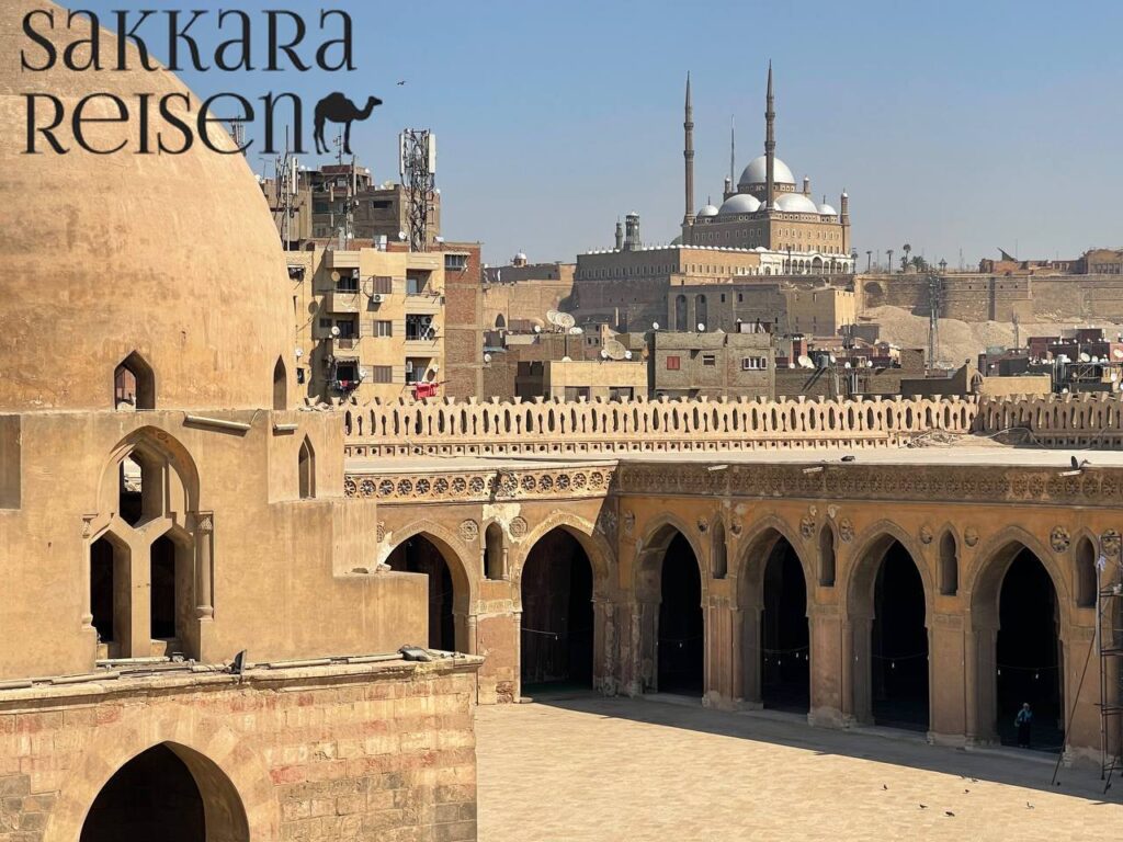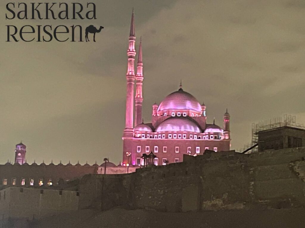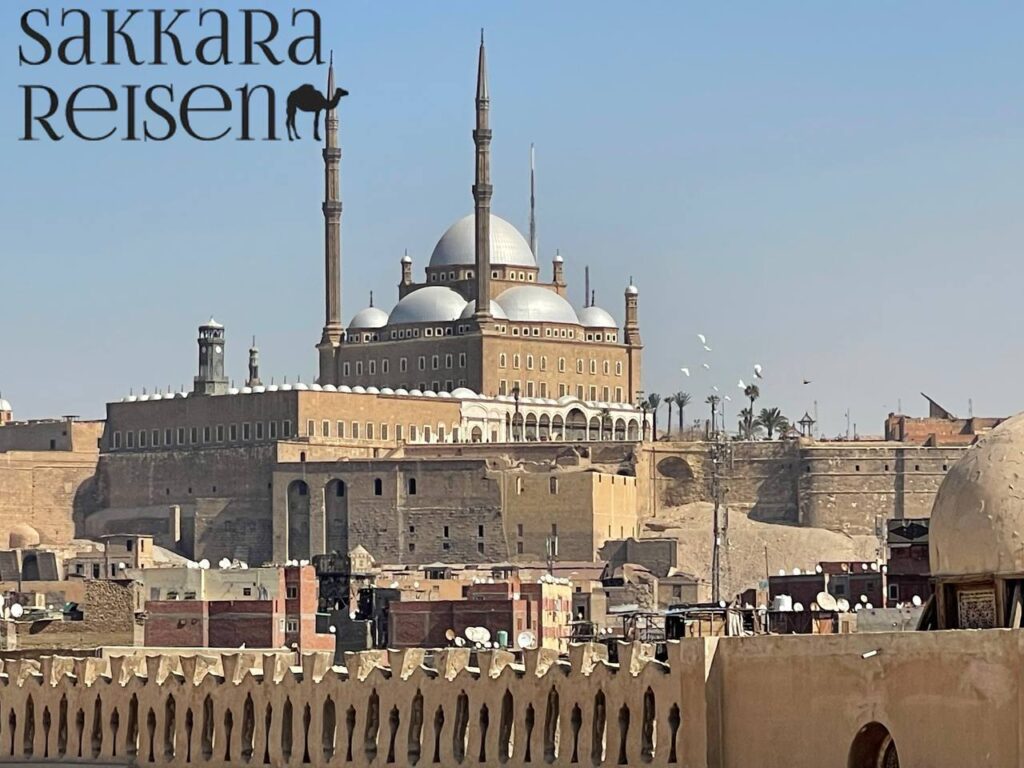 Von den Terrassen der Zitadelle von Kairo eröffnet sich zudem einer der schönsten Panoramablicke über die Stadt. Besucher können hier die Skyline von Kairo, die Minarette des Islamischen Kairo und an klaren Tagen sogar die entfernten Pyramiden von Gizeh erkennen. Die ruhige Atmosphäre des Innenhofs, kombiniert mit dem Ruf zum Gebet und dem Duft von Weihrauch, schafft einen besonders eindrucksvollen Moment. Dieser Besuch verbindet Geschichte, Architektur und spirituelle Kultur und gehört zu den unvergesslichen Höhepunkten jeder historischen Erkundung der Stadt.